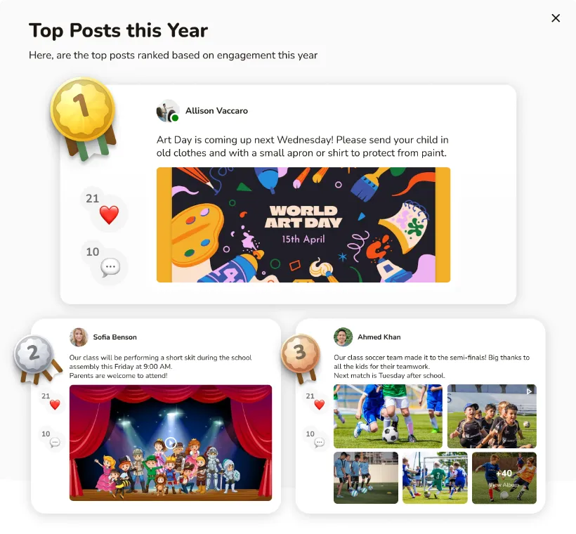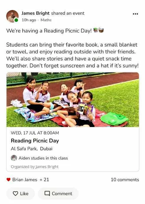 Create and manage class events, trips, and special activities with ease. RSVPs tracked, reminders automated, parents always in the loop.
