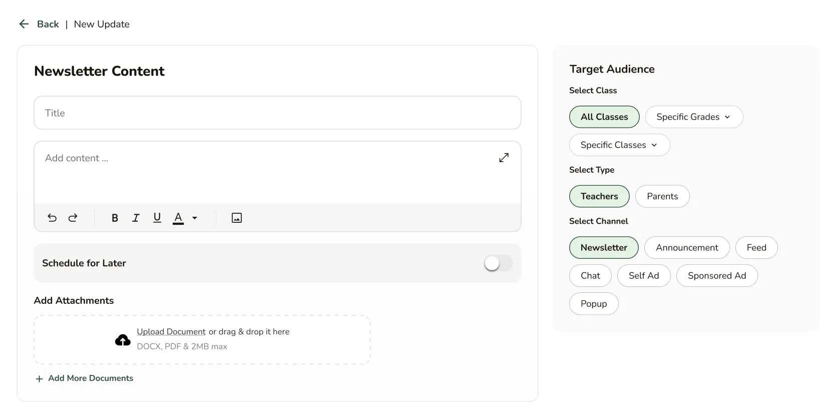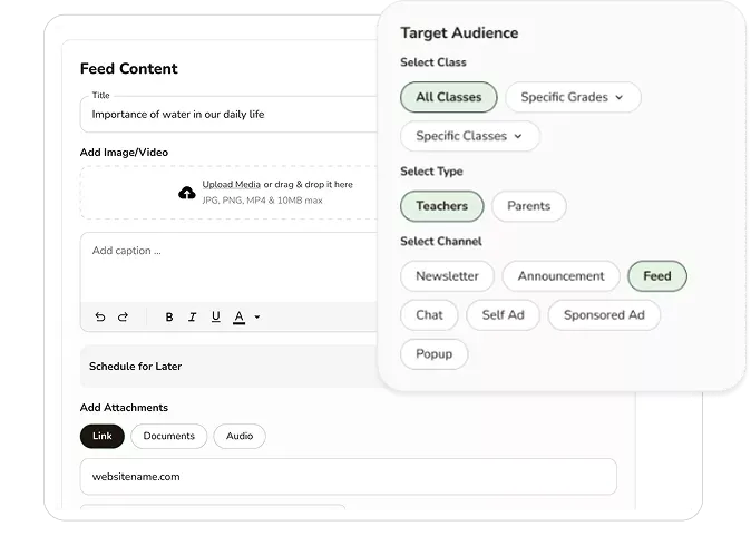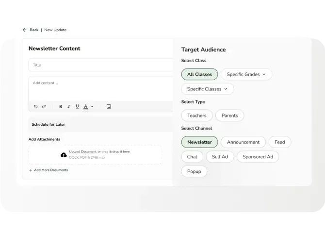 Reach every parent through targeted, timed messages — without clutter, without confusion, and without your staff managing many different WhatsApp groups.