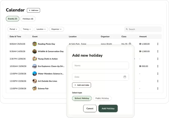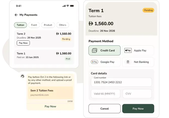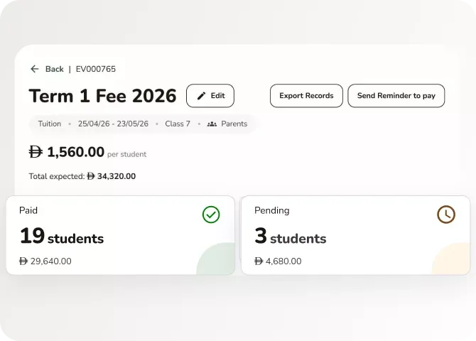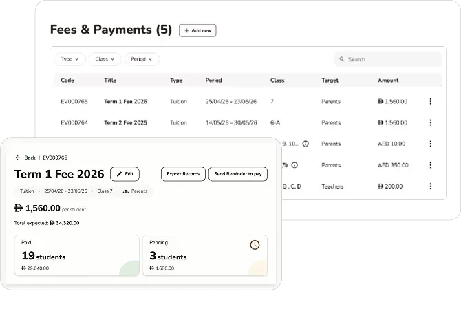 Manage all fees, events, and extras through a single, unified payment system — with automated reminders, receipts, and zero manual follow-up.