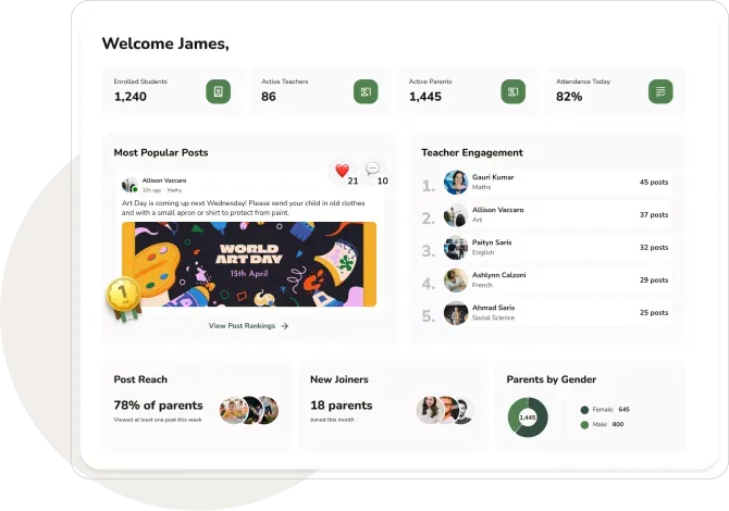 One platform connecting every role in your school community. Cleanly, intuitively, and in every language.
