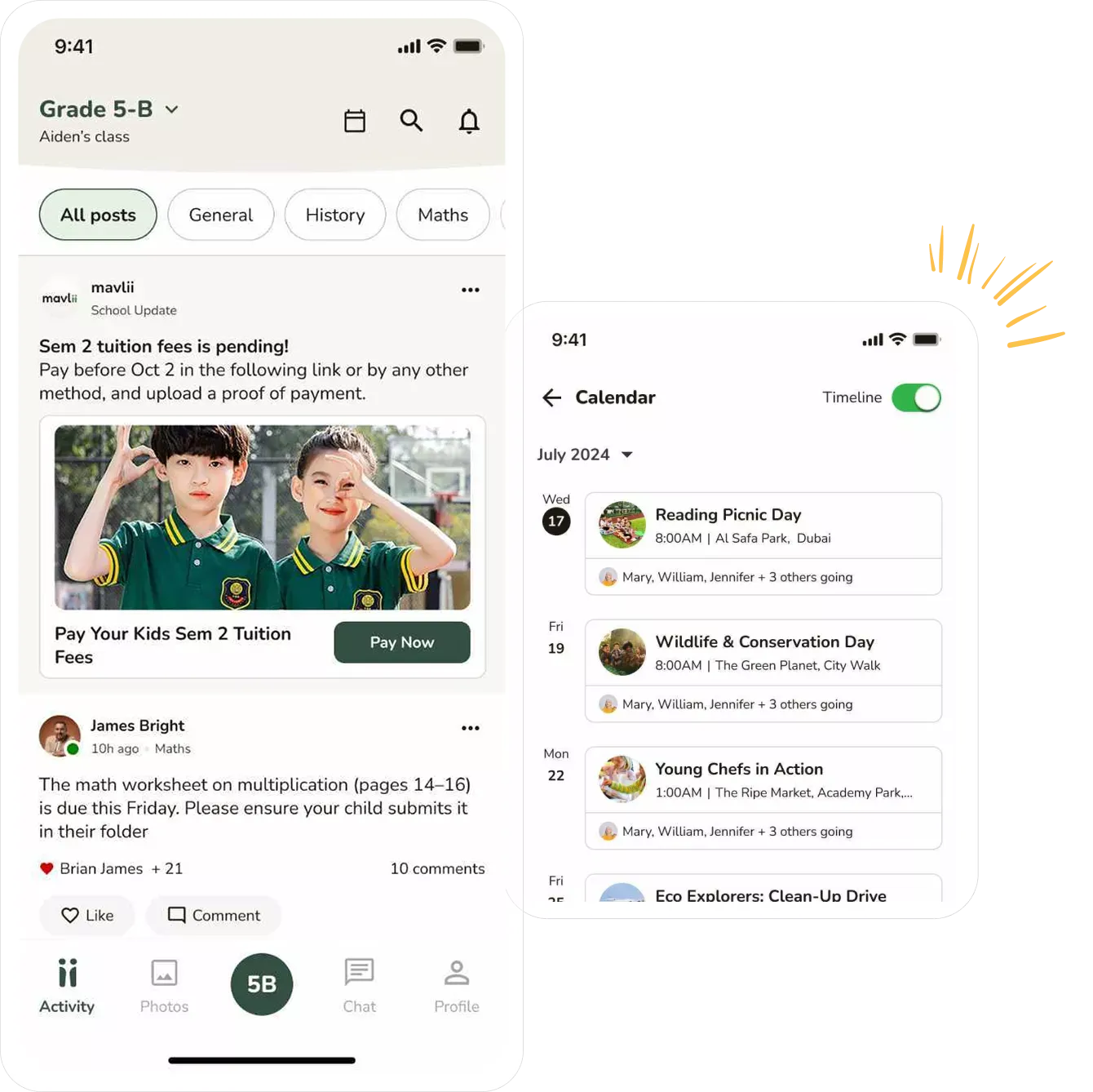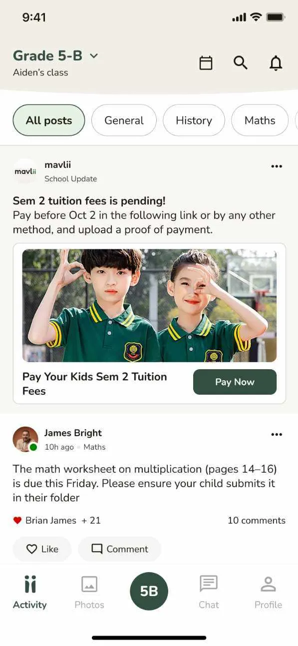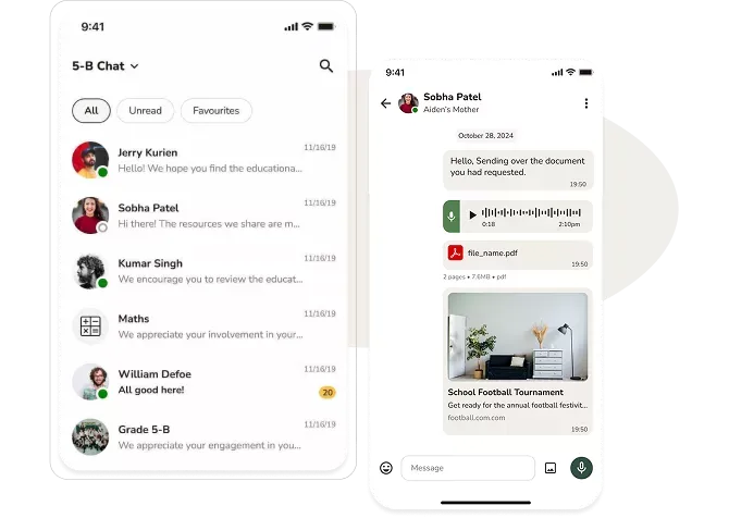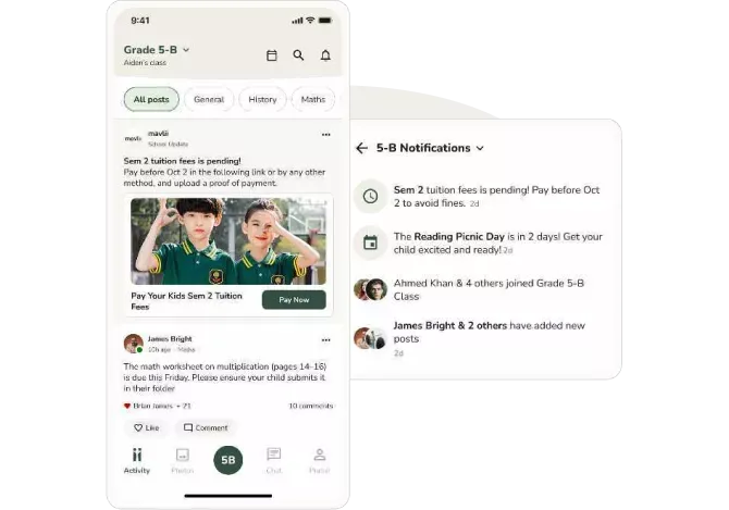 One platform where leadership communicates, teachers share classroom life and parents never miss a thing. With your school's name on the app.
