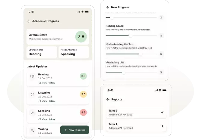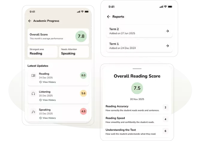 Follow the full learning journey — not just the end-of-term report. Know what was covered, what's coming next, and how to help at home.